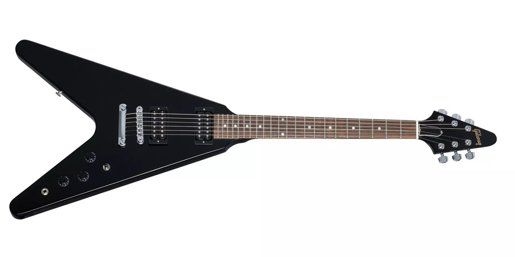 The Gibson Flying V is considered an iconic design by modern guitarists. It was first introduced in 1958, and in the following decades it became increasingly popular, especially with hard rock and metal guitarists. For many of them, the 1980s is when the model really hit its stride. The Gibson 80s Flying V is based on the highly sought-after 1984 models. It features a fast-playing Slim Taper mahogany neck with a rosewood fretboard. The iconically-shaped mahogany body is outfitted with new 80s Tribute pickups that accurately capture the unique fat-toned sound and rich sustain of the models from that era. A hardshell case is also included.