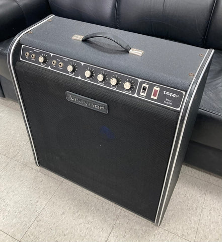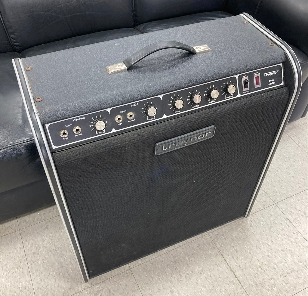 The Traynor YBA-4 Bass Master is a vintage all tube combo amp known for its rugged build quality and powerful, vintage tone that is often compared to early Marshall and Fender Bassman amps. It has become a sought-after model for both bassists and guitarists due to its versatility and rich, overdriven sound when pushed. The YBA-4 is a combo version of the popular YBA-1 head, known for its "point-to-point" hand-wired construction and durable design.